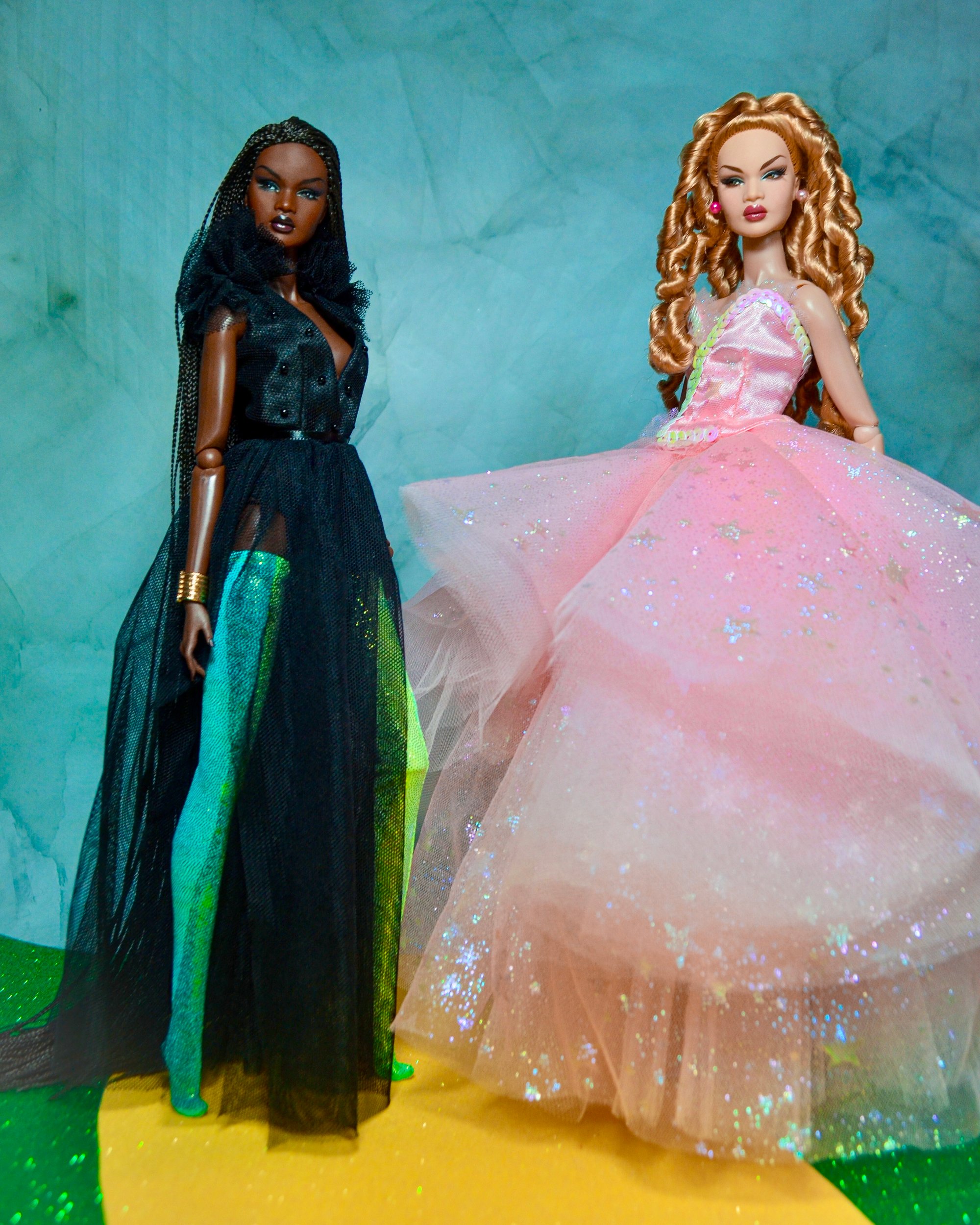 This beautiful gown fits Nu.Face and Poppy Parker. Its a detachable skirt dress and fully lined bodice with hand beaded stones.